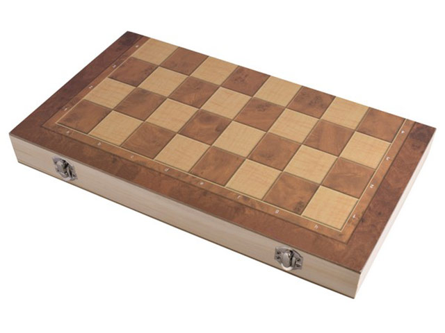 includes chess, backgammon and checkers. hinges closed