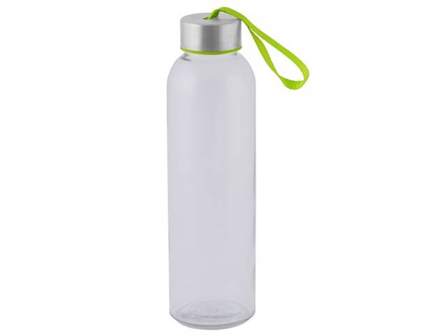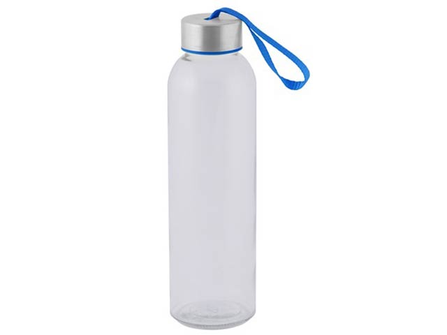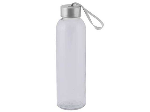 a 500ml glass water bottle with a stainless-steel lid that has a leak proof silicone seal and strong carrying cord.