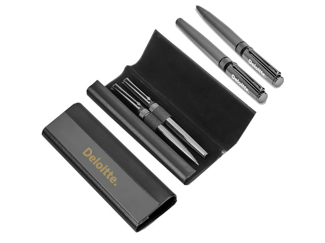 The Alex Varga collection features writing instruments with distinctive yet tasteful designs, and high quality refills and mechanisms. Each piece or set is presented in elegant packaging, making them gifts which are given with pride and confidence. This ball pen has a striking gun metal finish, and is fitted with a metal refill with a minimum writing distance of 3,000 Metres. Replacement refills are available (code AV-19029). The free-flowing rollerball has a shorter minimum writing distance of 600 Metres, but a spare refill is provided within this set, and replacement refills are available (code AV-19009).andnbsp;