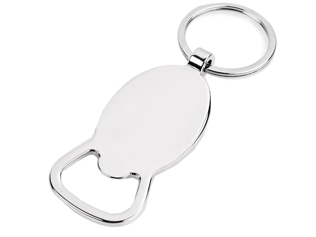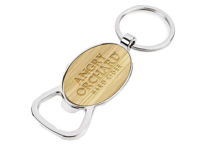 This is a nickel plated zinc alloy bottle opener keyholder, with a bamboo inset which can be printed or laser engraved.