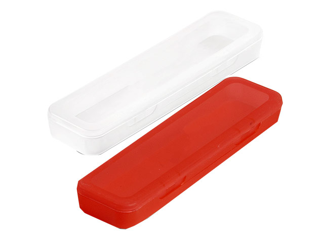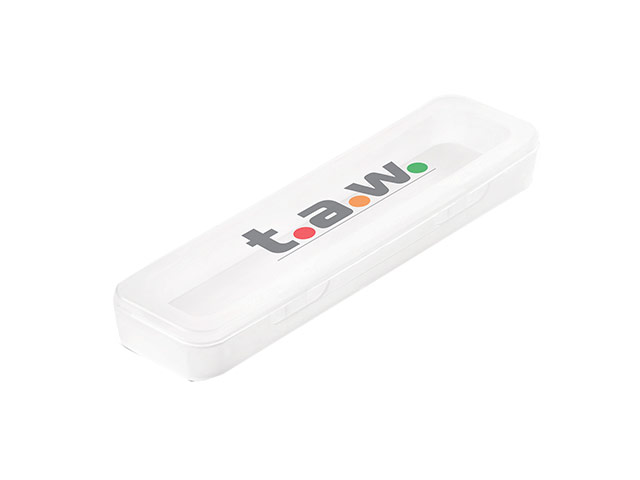 Transparent . Can fit a slim pen, pencil, 15cm ruler , eraser and sharpener. Available only when combined with 2 or more stationery items from this catalogue. Not a stand-alone item.