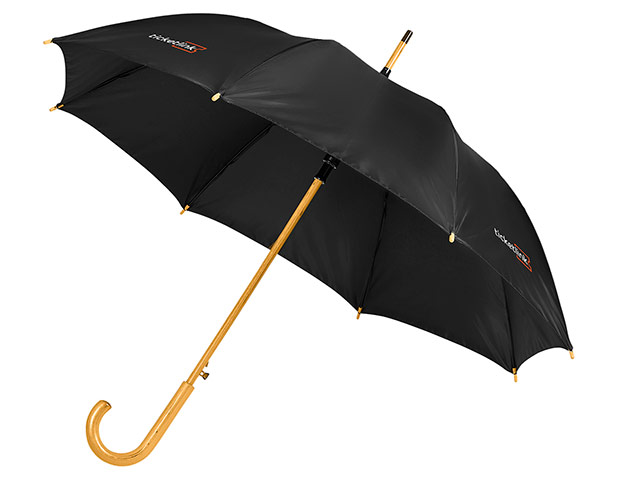 Stay dry in style with this classic design, auto-open umbrella with a wooden shaft and handle.