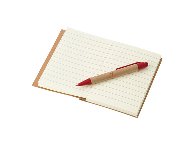 Mini recycled notebook and pen features: