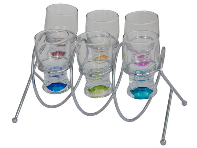 includes: stand and 6 x shot glasses with coloured base